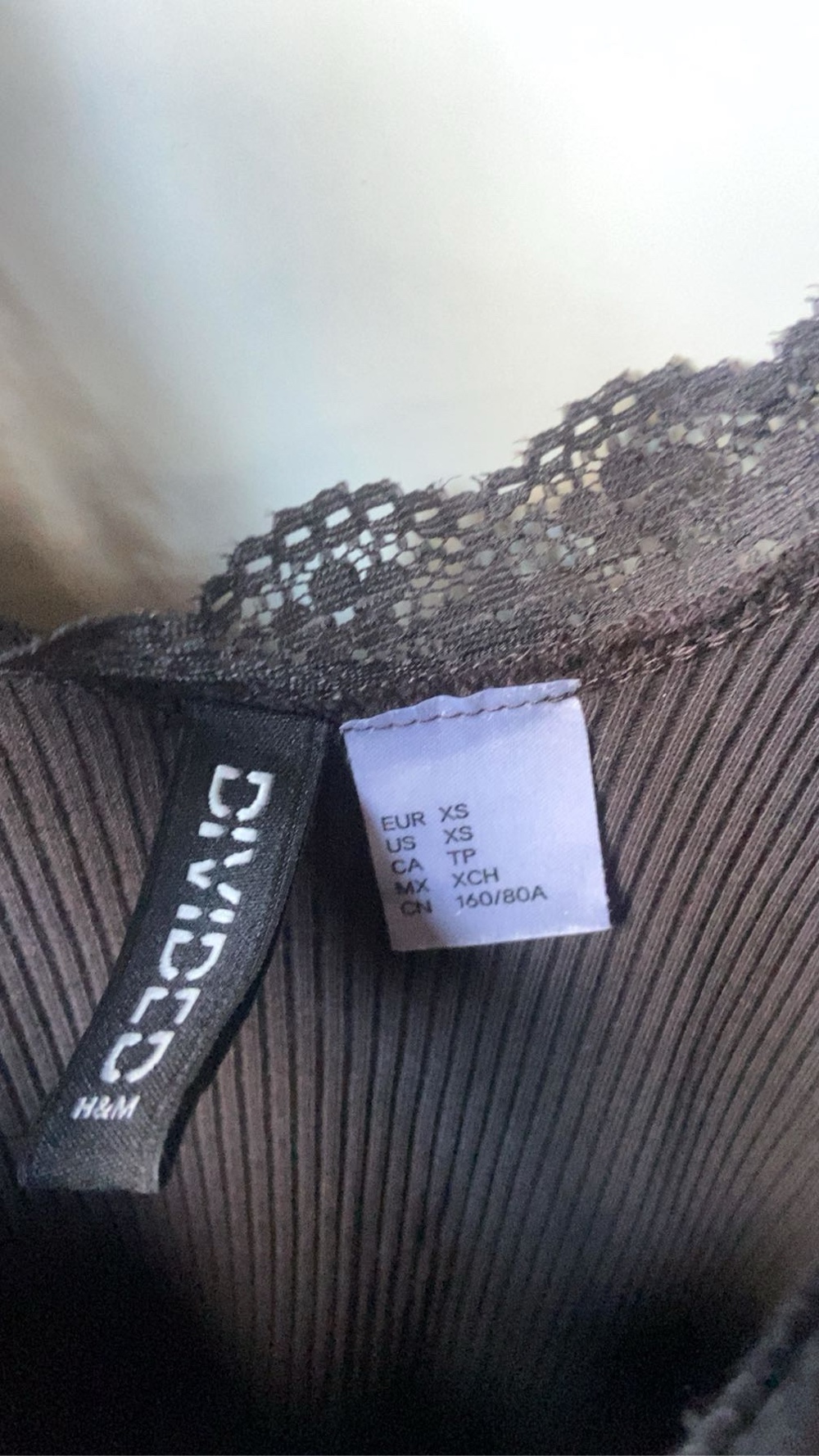 Ribbed black top with lace details. Size XS.