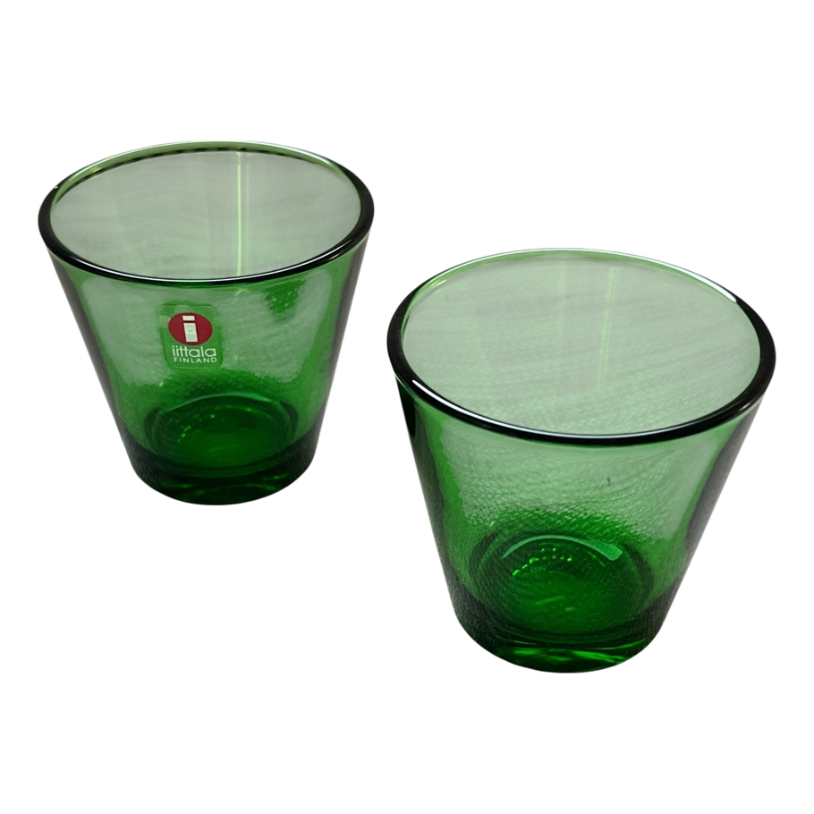 Two Iittala snaps glasses. Measurements in pictures. Excellent condition, used only a few times. Bought between 2000–2003; that color shade's production was discontinued at some point.