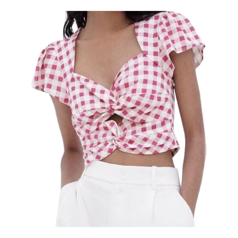 ZARA Pink Gingham Crop Top / Cottagecore Romantic Summer Blouse / Size S 🌸