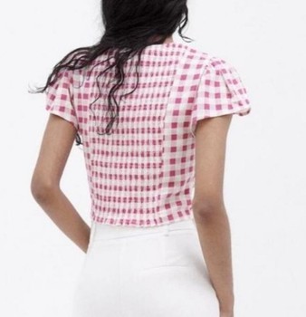 Zara top, gingham crop top, pink blouse, cottagecore top, coquette top, romantic blouse, puff sleeve top, summer top, crop blouse, cute top, feminine top, holiday top, picnic top