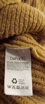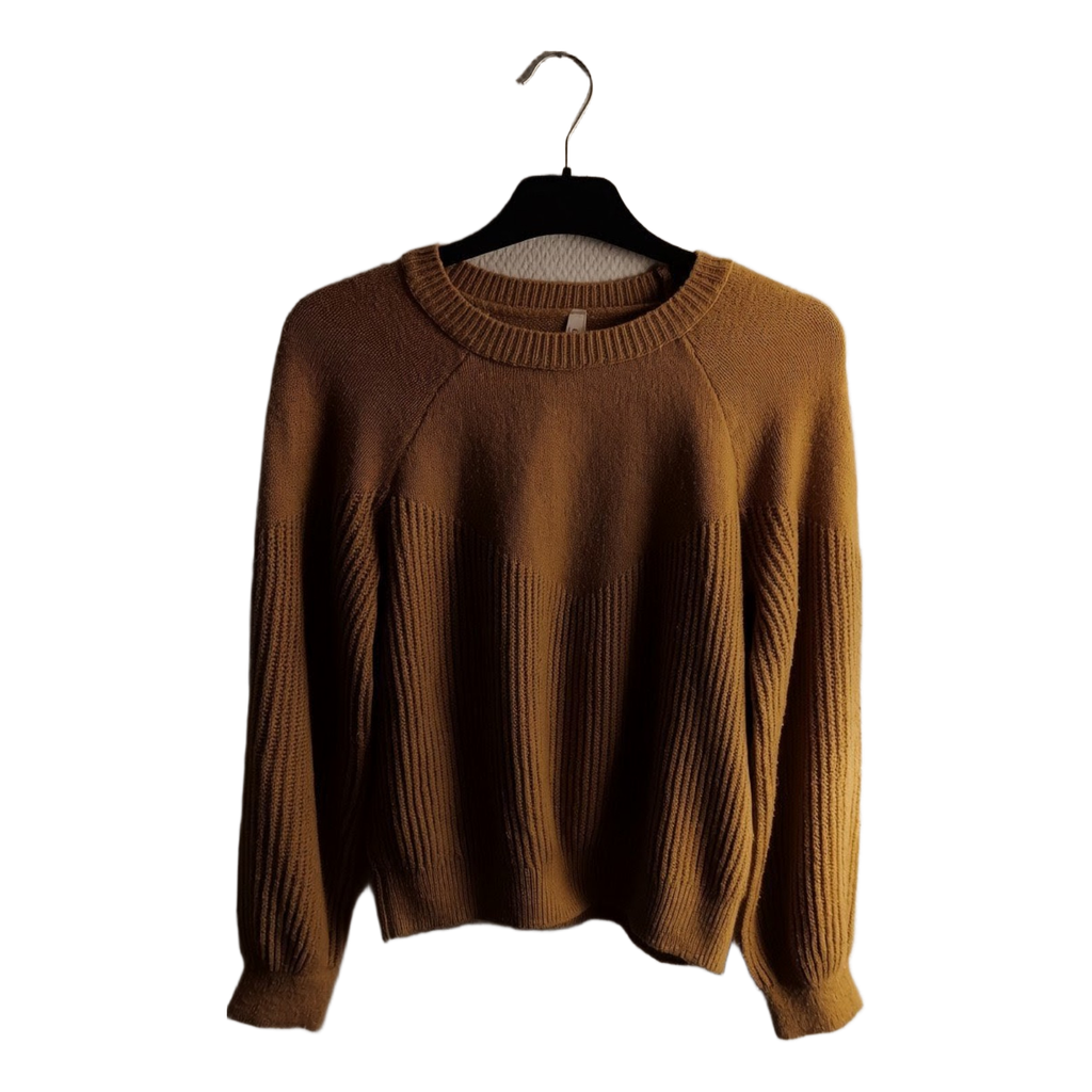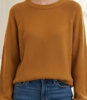 Mustard yellow ribbed-pattern sweater. Material 80% acrylic and 20% polyester.