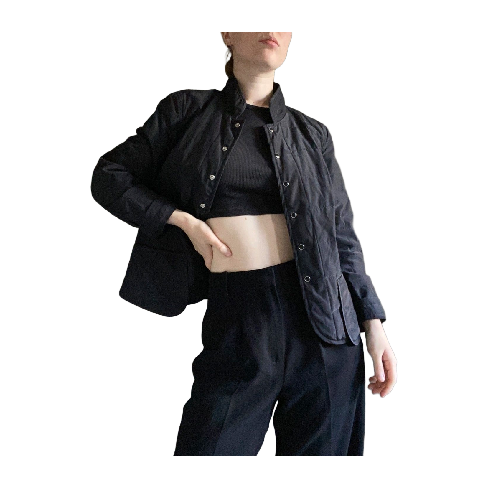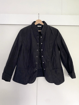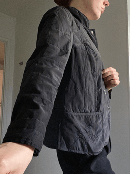 Black vintage quilted coat for autumn - beautiful decorative embroidery on the pockets - size approximately S - closes with buttons