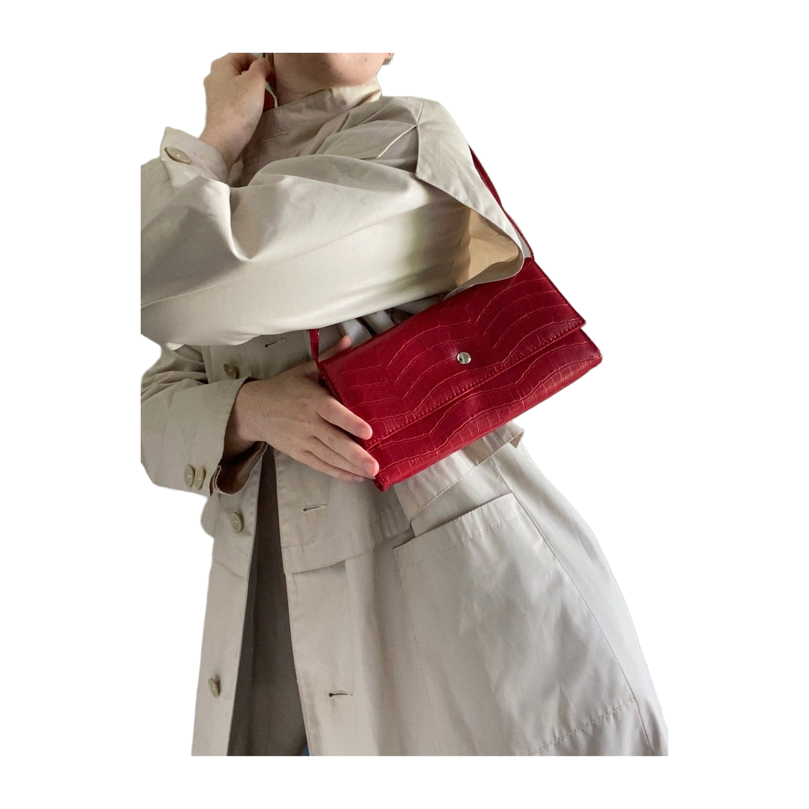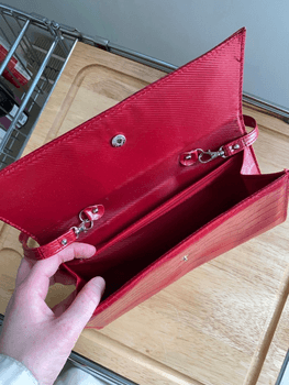 Beautiful red vintage bag - in like-new condition - with clips, easily removable shoulder strap, i.e. also works as a clutch