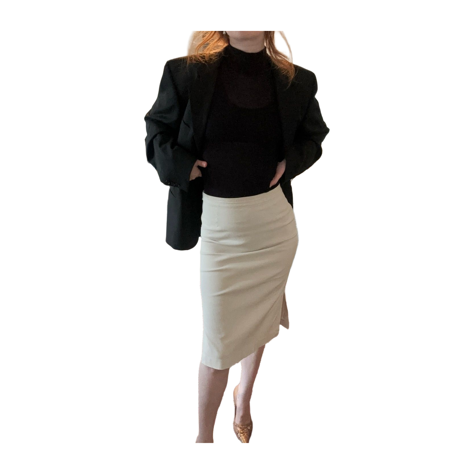 Classic pale beige vintage pencil skirt for both everyday and celebrations - stretchy fabric and slits at the sides of the hem - size 38 🤍