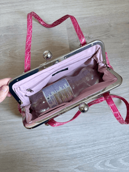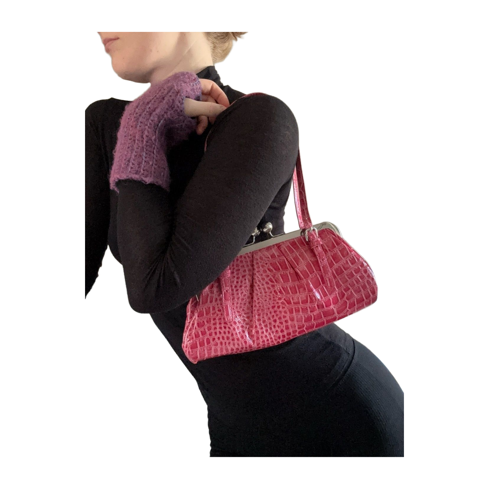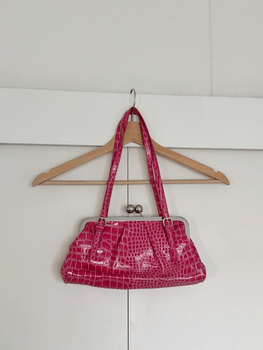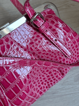 Lively Y2K-style bag in a fuchsia shade - patterned faux leather - inside two storage pockets - in like-new condition