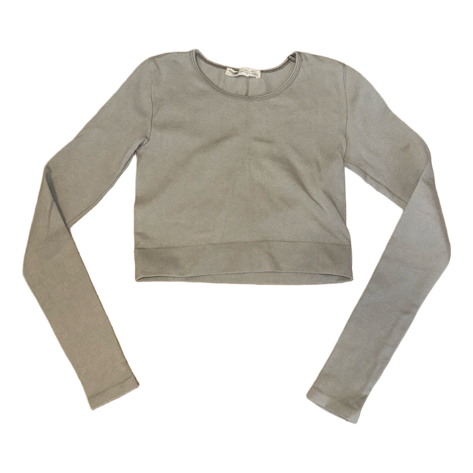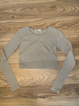 Long-sleeve crop top in a ribbed fabric. Round neckline.