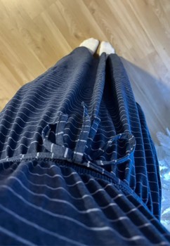 Blue maxi dress decorated with stripes. Sleeveless design, with a drawstring at the waist and a slit at the hem. I am 170 cm.