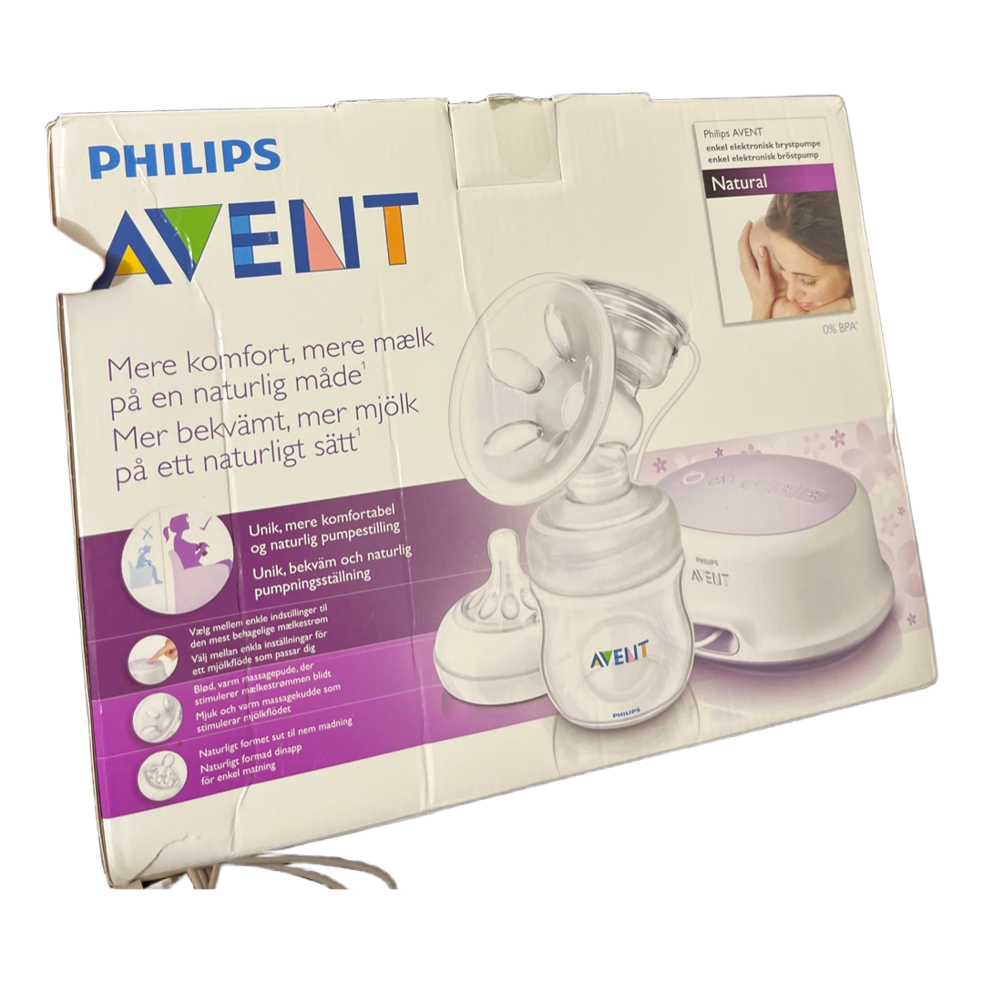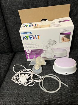 Philips Avent single electric breast pump with Natural tubing. Includes power adapter and original packaging.