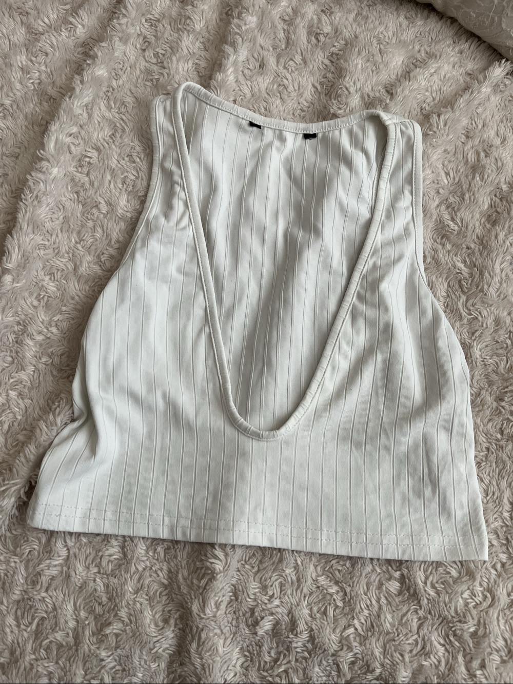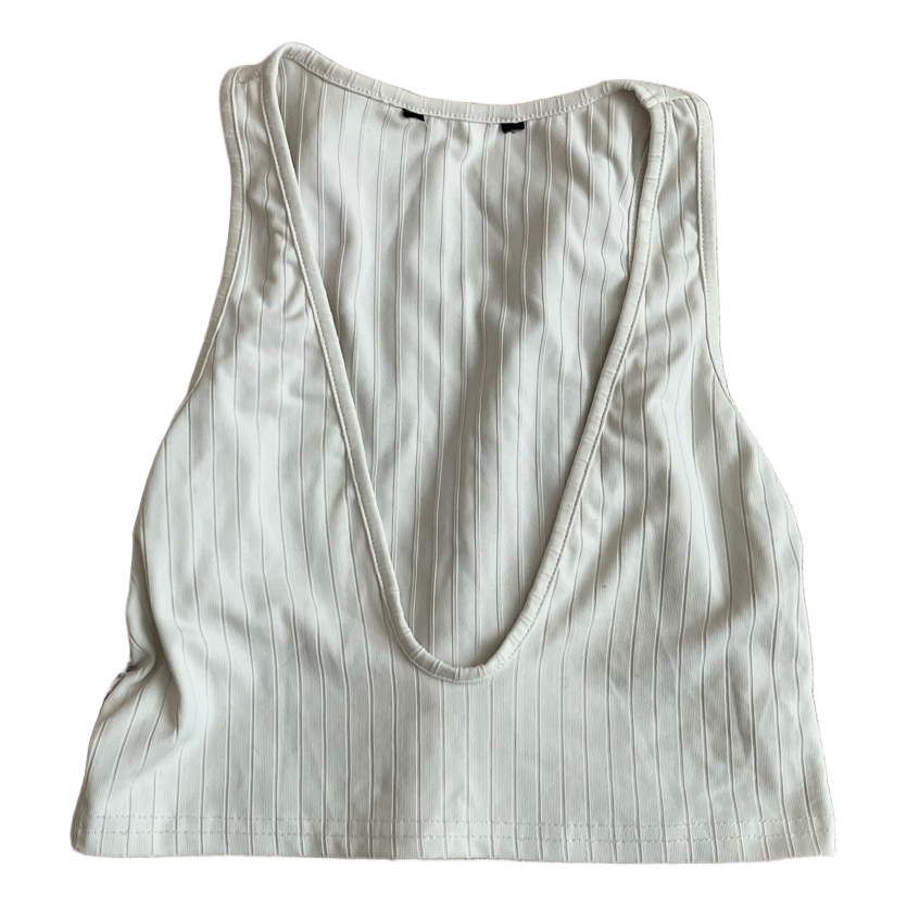 White deeply scooped ribbed top.