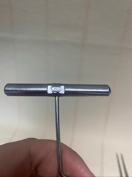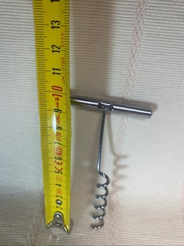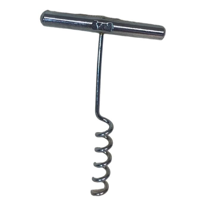 Handheld wine corkscrew made of metal. Compact design.