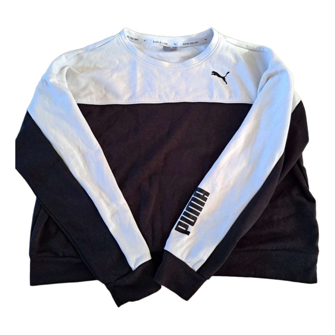 Black and white long-sleeved sweatshirt with Puma logo print. Size M.