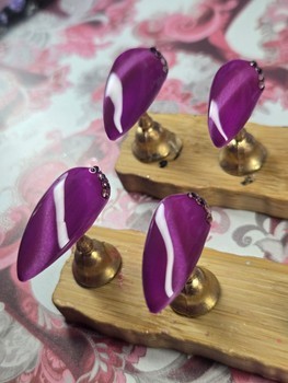 Rubber gel reinforced lilac cat eye set with pale pink nail rhinestones 💜🩷💎 (#122)