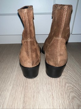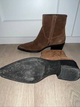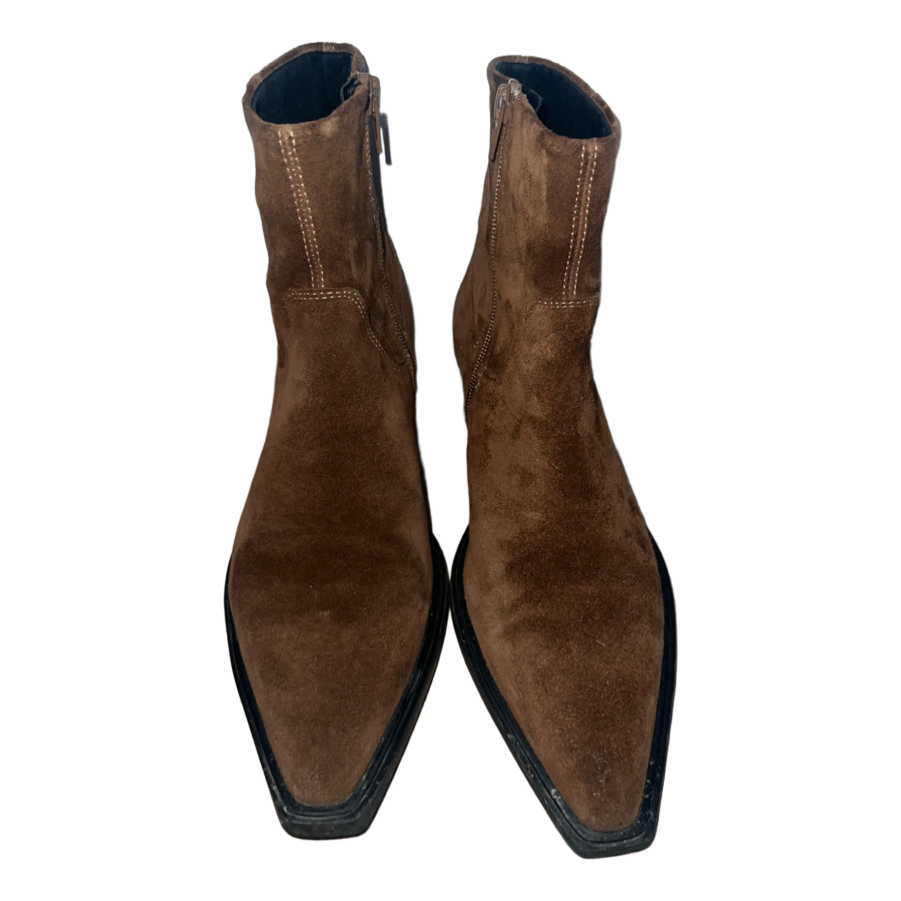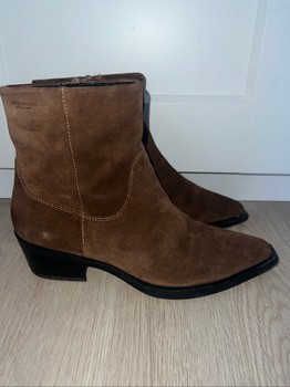 Brown suede ankle boots by Vagabond with a pointed toe and side zipper. Black block heel. New price - 170 eur.
