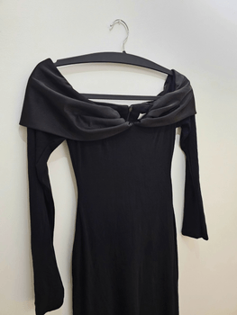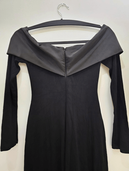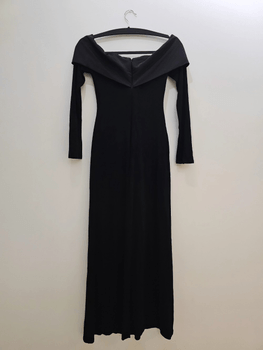 Features an off-shoulder design and a back zipper closure. The size is marked as M, but in my opinion it fits like an S/34.