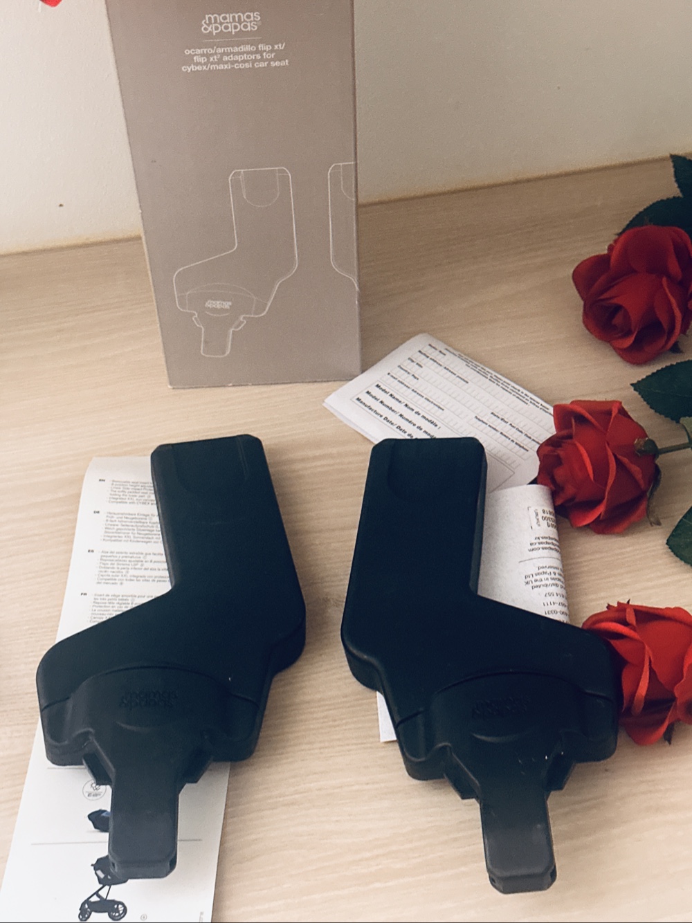 Mamas & Papas Ocarro/Armadillo Flip XT/Flip XT2 stroller car seat adapters. Compatible with Cybex and Maxi-Cosi car seats.