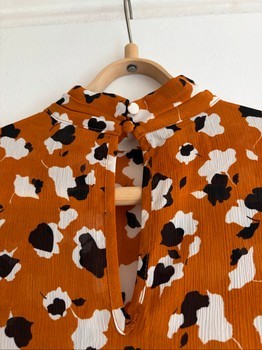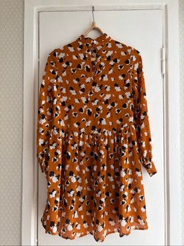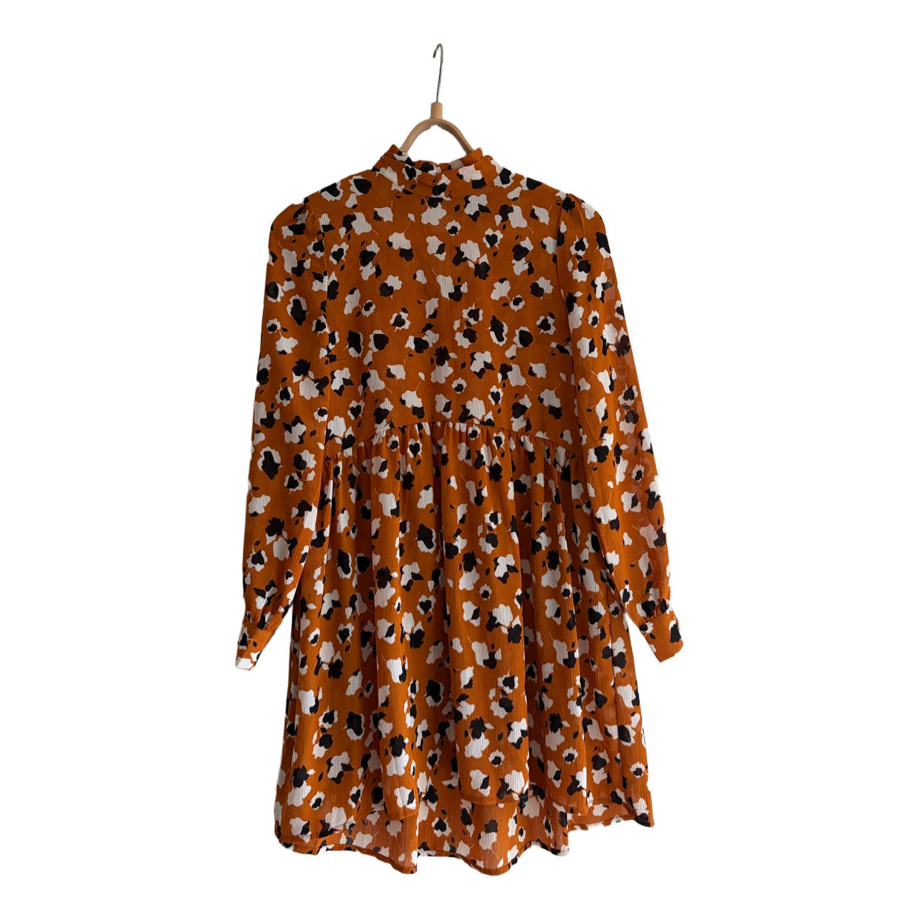 Floral print mini dress with long sleeves and a high neckline. Button detail at the back with a keyhole opening. From Vila, size 36