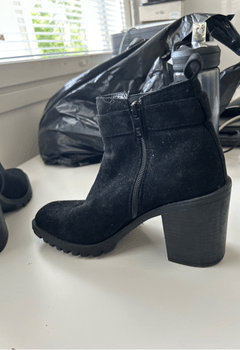 Suede leather shoes with a small heel