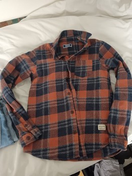 Checked button-down shirt and denim shorts. Size 164/176.