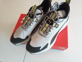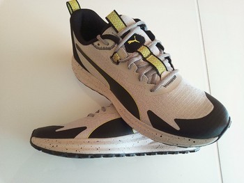Men's trail running sneakers in grey and black. Size 44.5.