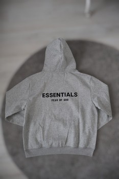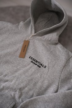 For sale completely new and unused Fear of God Essentials hoodie. Color is stylish black/dark gray. The hoodie has the brand-characteristic Essentials logo on the chest and on the hood. The model is a relaxed loose (boxy fit). The tags are still attached. Size: M. Measurements: Shoulder-to-shoulder 54 cm, length 65 cm. Condition: New, tags attached. Color: Black / Dark gray. Other: No pets in the household. Fast shipping!