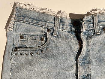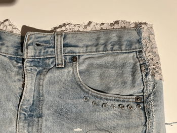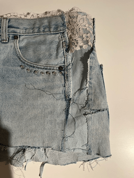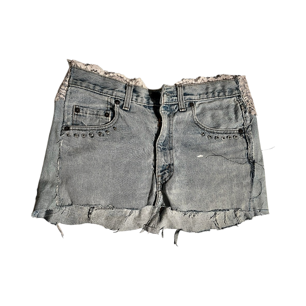 Light blue denim skirt with lace details