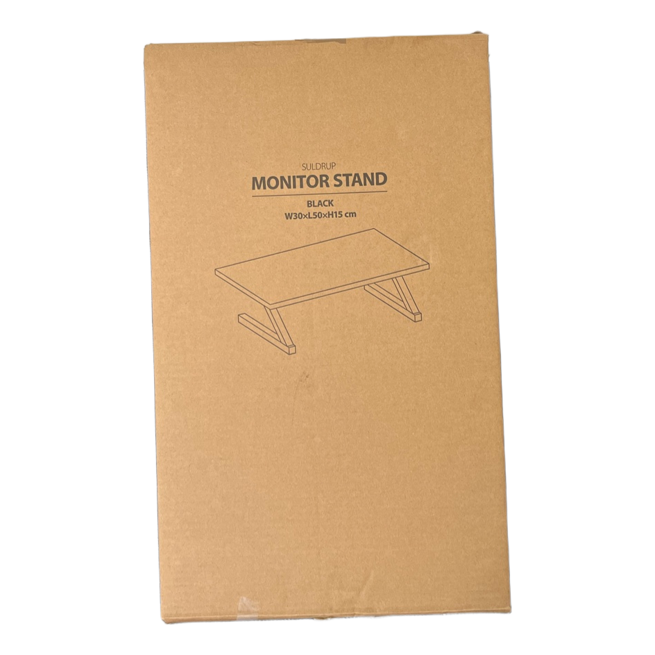 Black monitor stand in original packaging. Dimensions 30x50x15 cm.