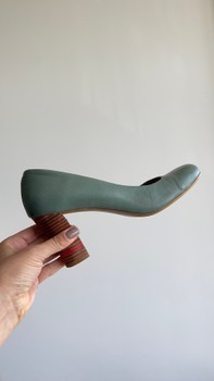 Green leather pumps with a wooden block heel. Size 39. Inner sole 26 cm, heel height 8 cm.