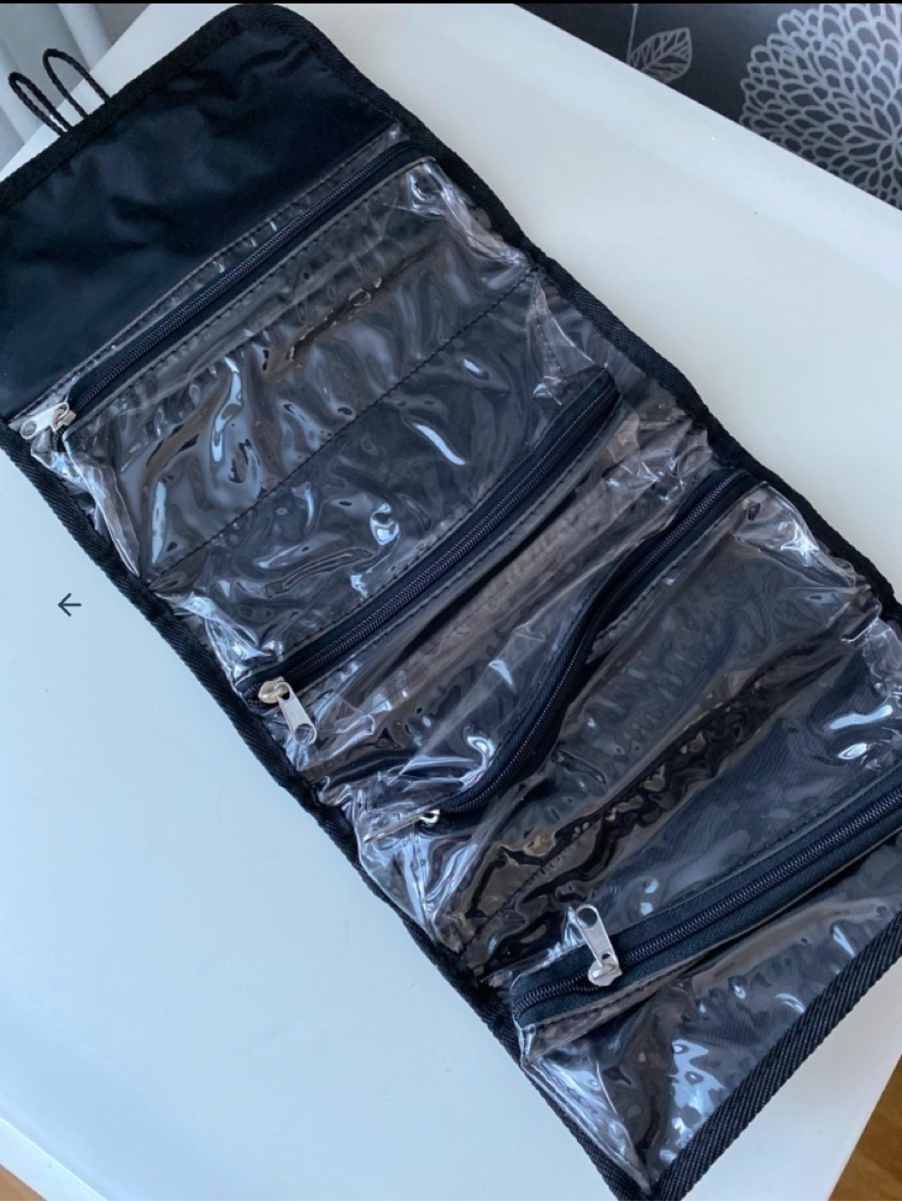 Black Duroy handy compartment makeup pouch