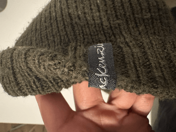 Green beanie with a turn-up. Brand McKenzie. Material not visible.