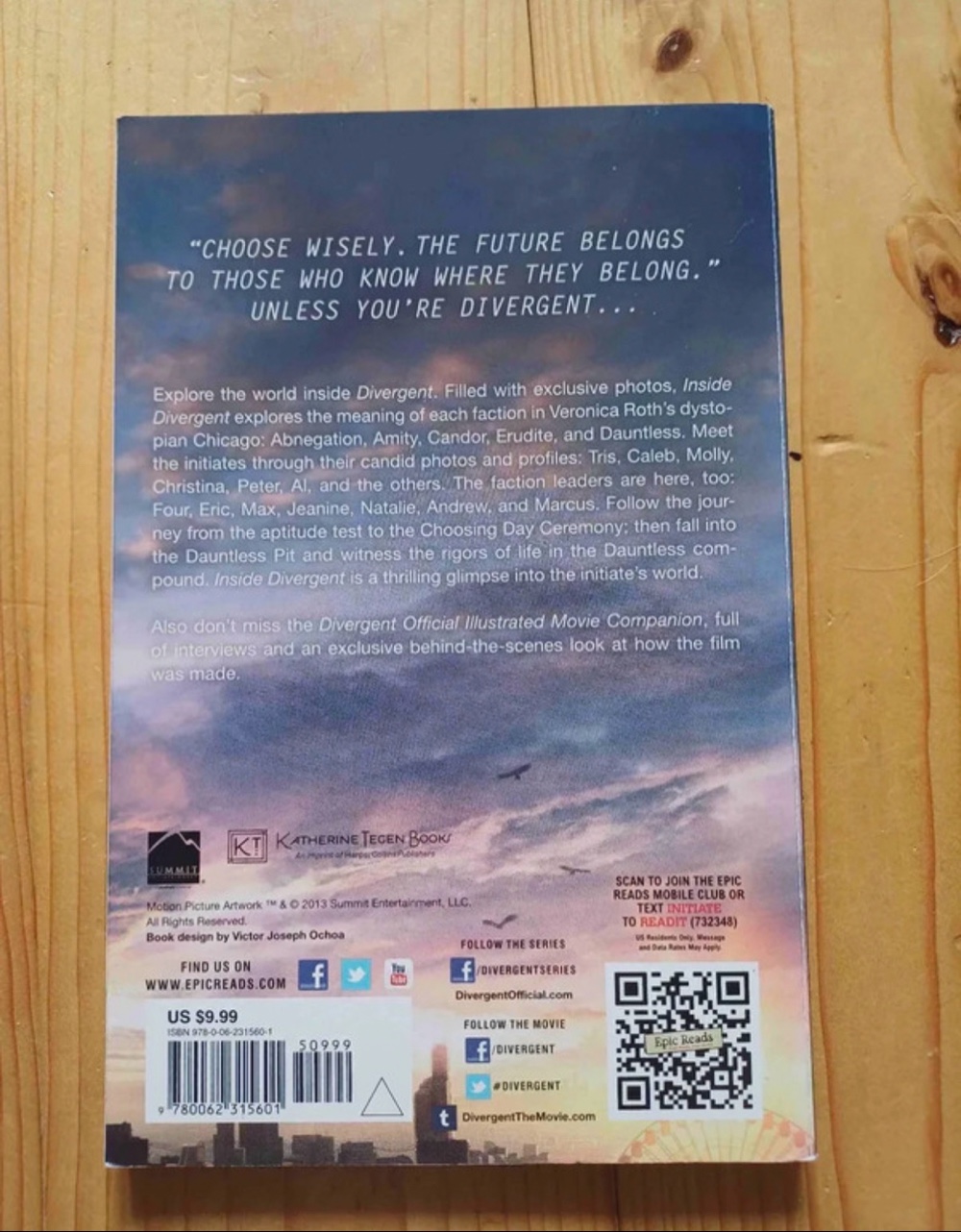 A softcover book titled Inside Divergent: The Initiate's World. Features exclusive photos and behind-the-scenes content from the film.