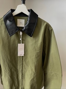 Green jacket with black collar and front zipper closure. Size M. New with tags.