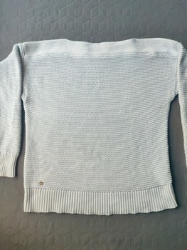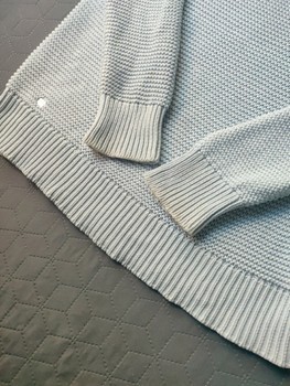 Stylish and high-quality women’s light blue sweater, which has a beautiful textured surface (waffle knit).