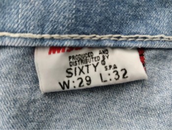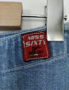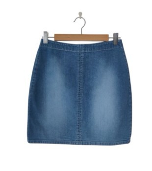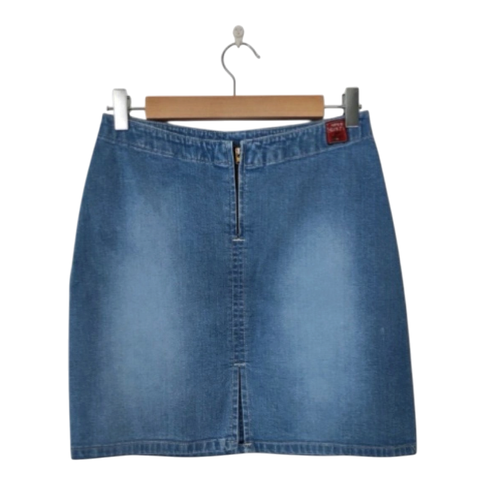 Blue denim skirt, with zipper and vent at back. Size 29, corresponds approximately to size S-M (measurements in pictures). Very good condition.