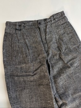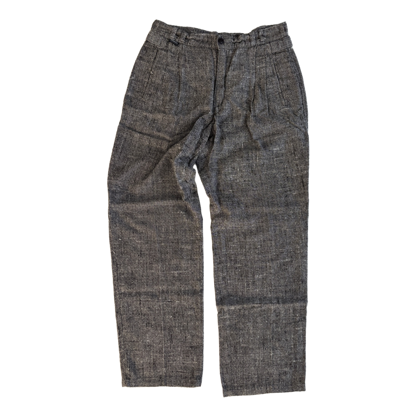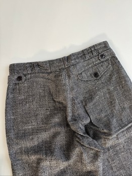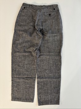 Front open pockets on both sides and a buttoned pocket on the right at the back. Belt loops at the waist. At the waist also decorative tightening straps (someone skilled at sewing can make another hole, which makes it easy to tighten the waist).