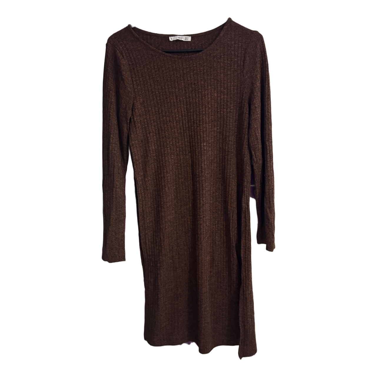 Brown ribbed long sleeve dress