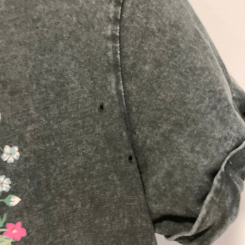 Faded vintage-look tee with rolled sleeves, crew neck and regular fit. Overall in very good condition, with two tiny holes near the sleeve that add authentic grunge character.