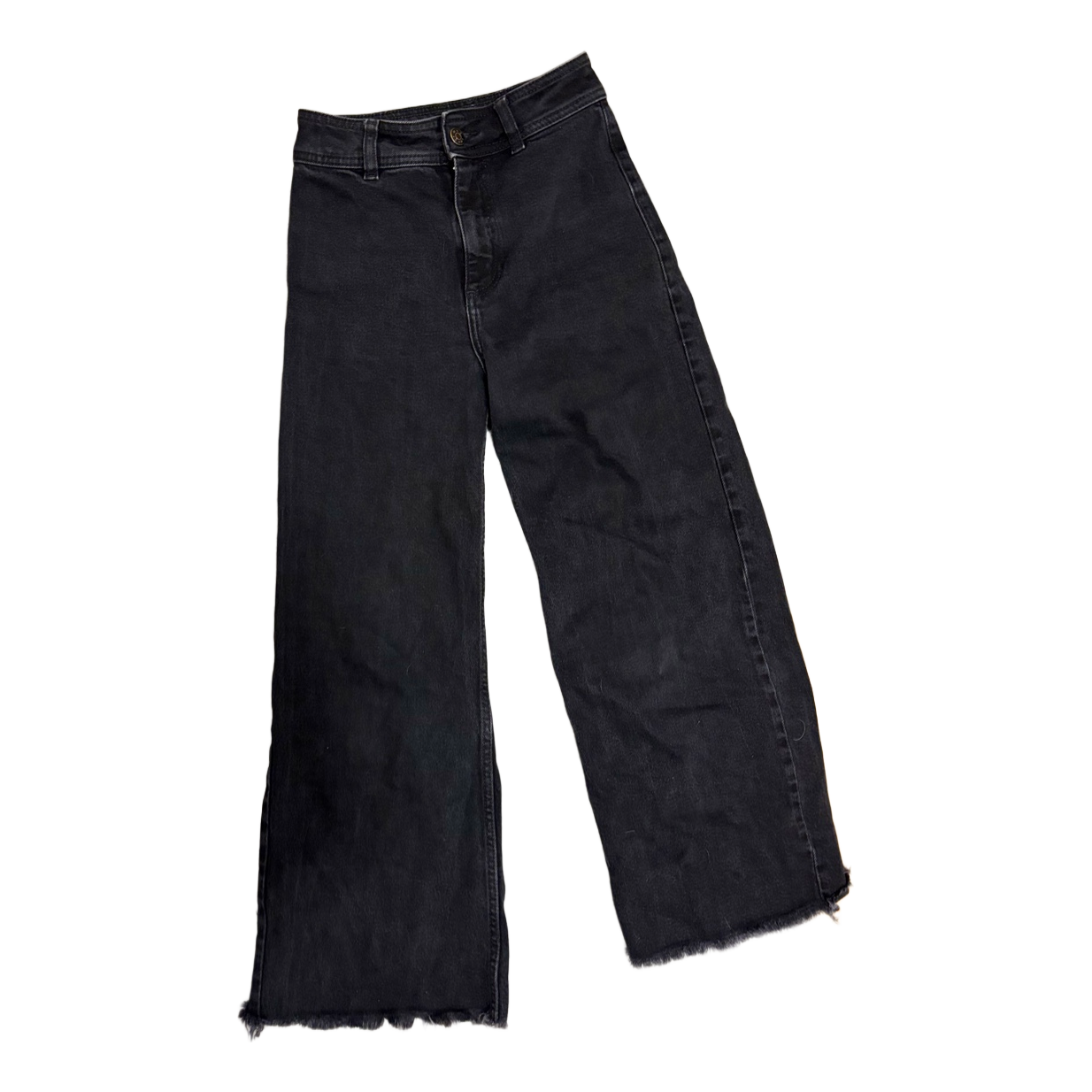 Worn very little, but because the girl who wore them is short the length was shortened from the very top to the very bottom: 86 cm, wide leg
