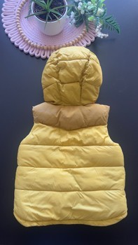 Yellow hooded puffer vest