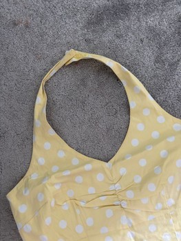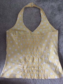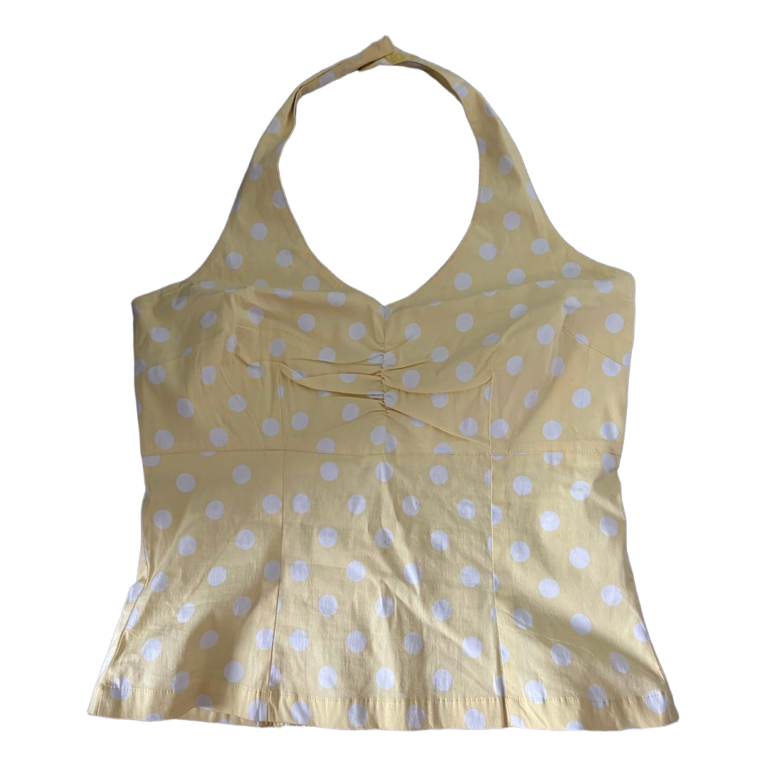 Yellow polka-dotted halterneck top. Elastic ruching at the back. Size 40. Y2k 2000s Tise: _ria_ Vinted: pikkumyy112