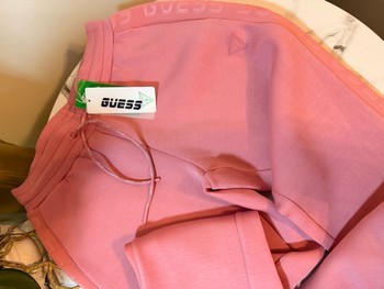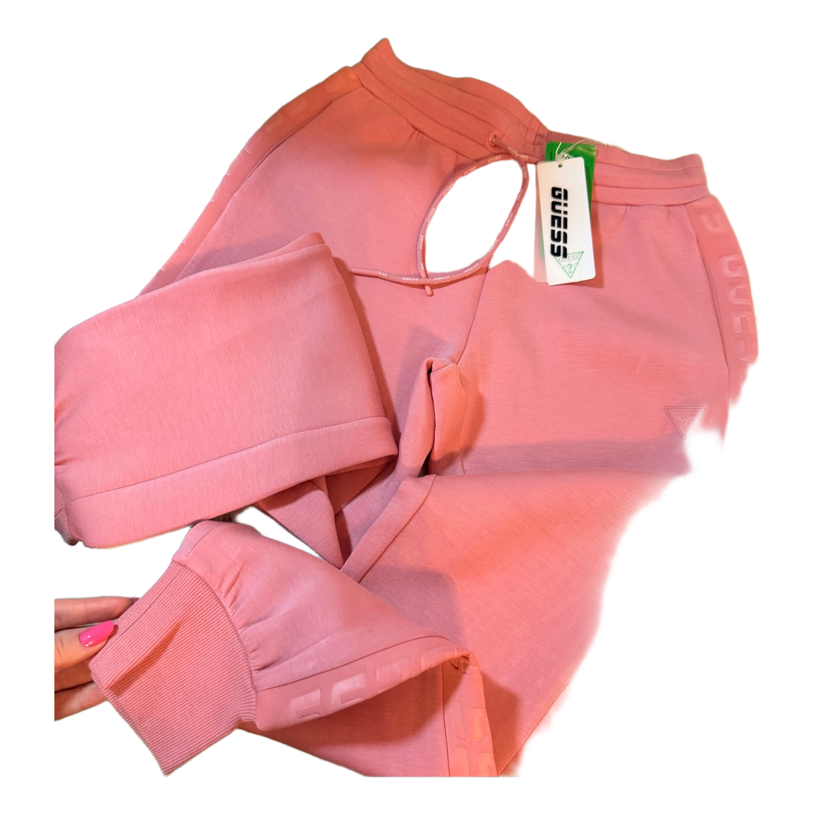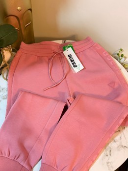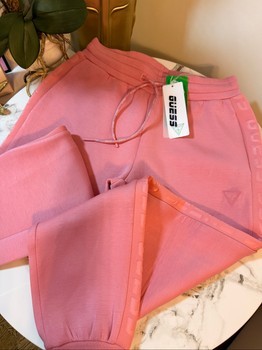 Pink joggers with drawstring waist and logo details on the sides. New with tags.
