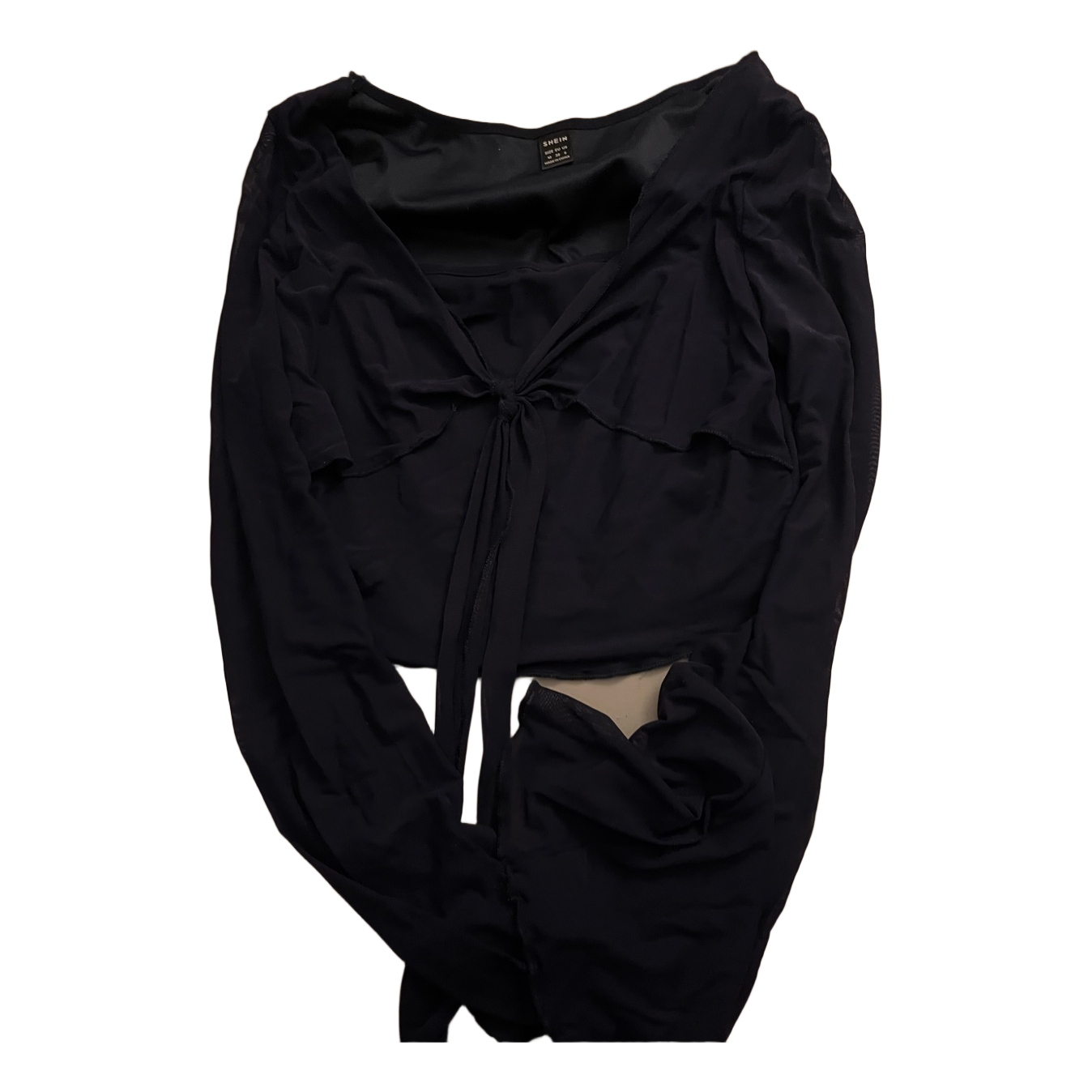 Black long-sleeved top with a tie-front detail. Size M.