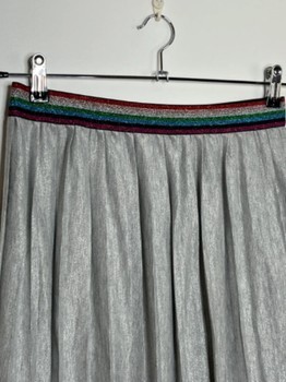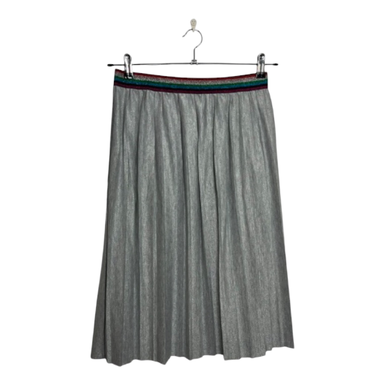 Silver-colored, shimmery pleated skirt with a colorful elastic waistband. Size 38. Excellent condition. Measurements in pictures.