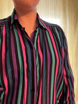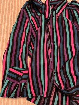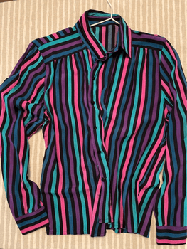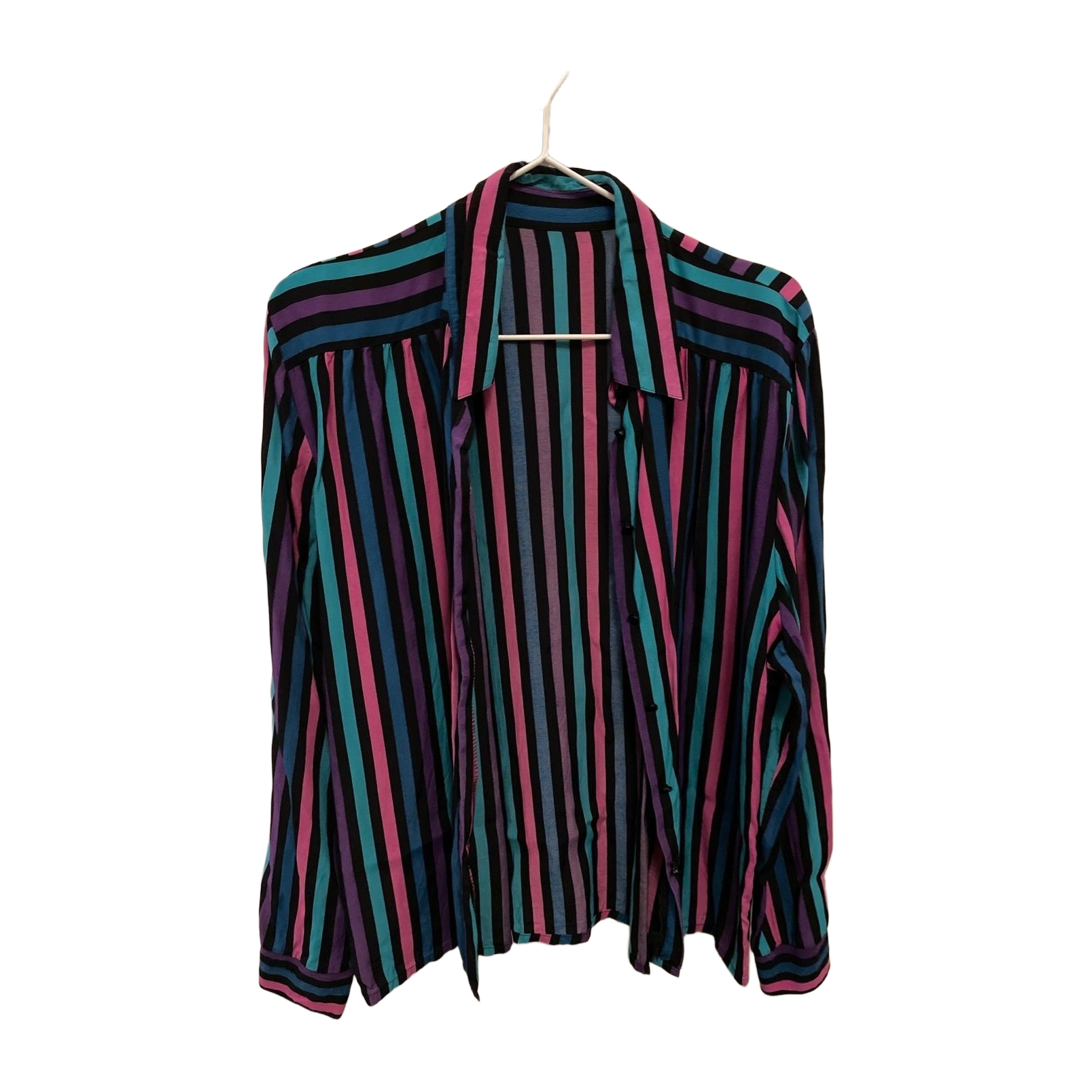 Relaxed and loose handmade vintage shirt-blouse. Fits M-L size or XS-S size as an oversized shirt. Material synthetic fiber; there is no more detailed information about it.