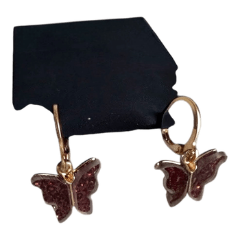 Gold-toned butterfly earrings with a brown glittering surface.