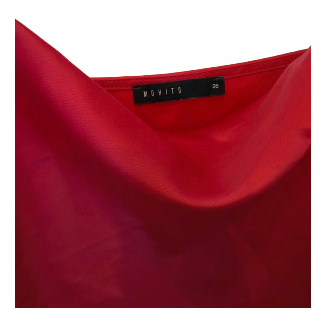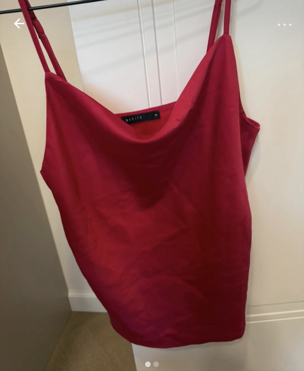 Red camisole top with thin straps and a draped neckline. Brand Mohito, size 36.