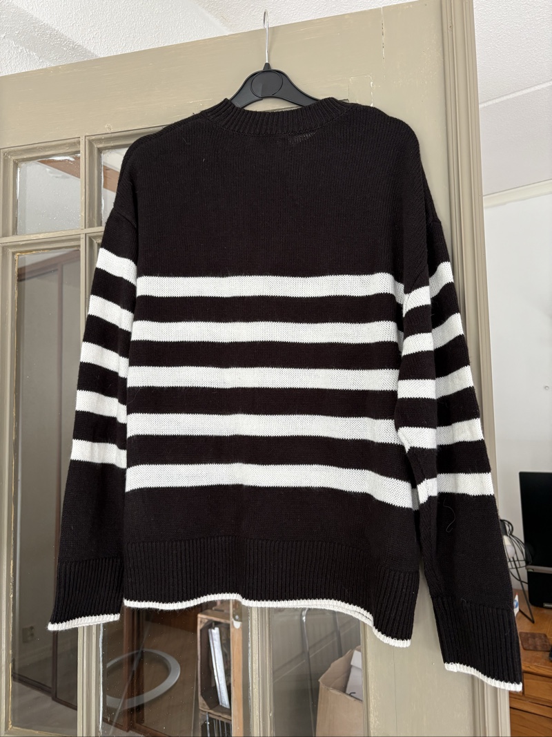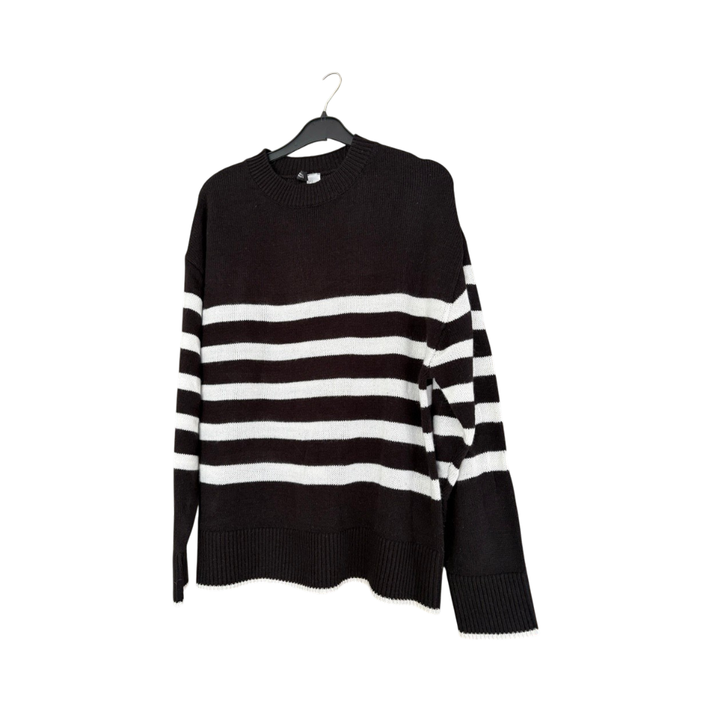 H&M, striped knit, black and white sweater, spring knit, summer pullover, lightweight jumper, casual top, acrylic sweater