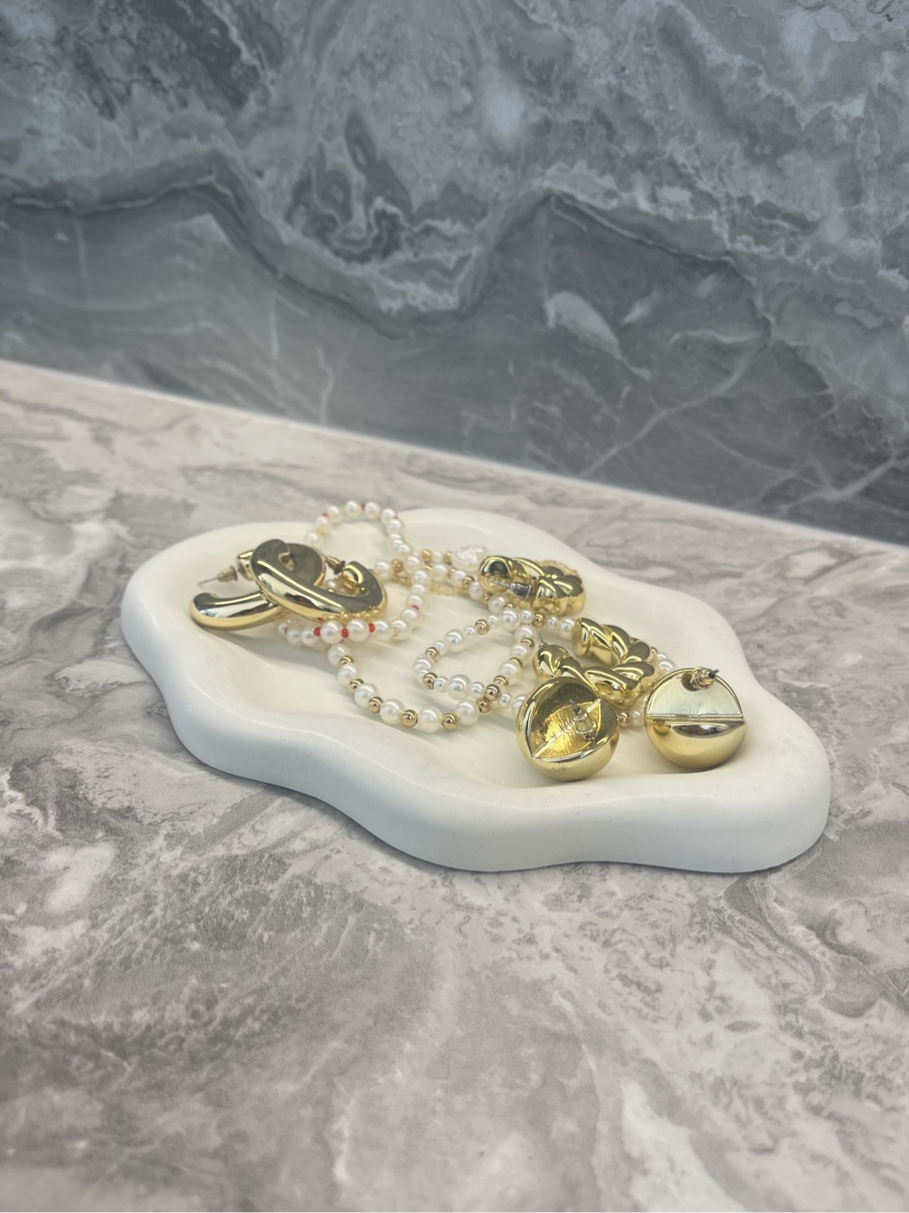 Wavy shaped tray in white. Ideal for organizing jewelry or small accessories. Jewellery not included.