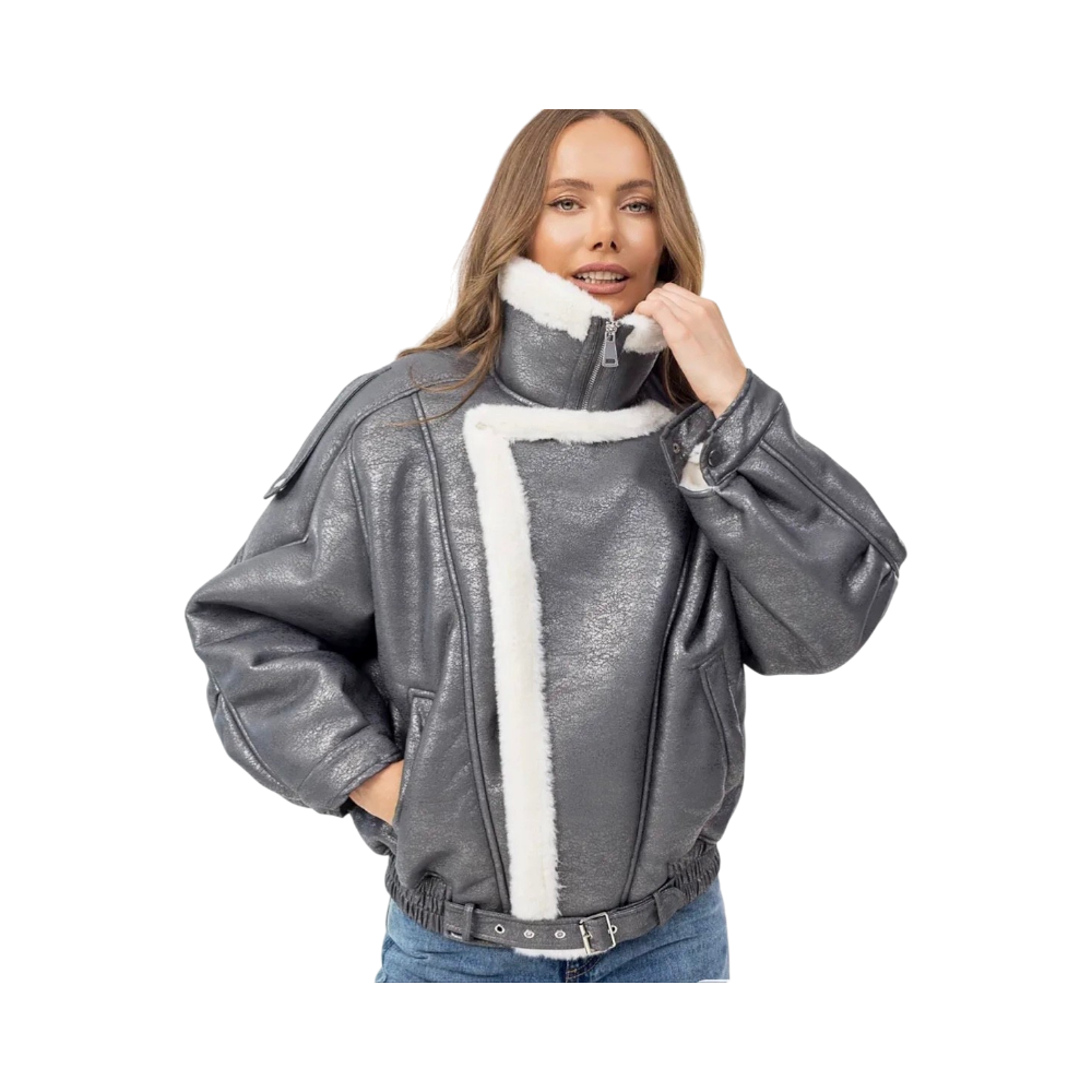 Grey faux fur bomber jacket