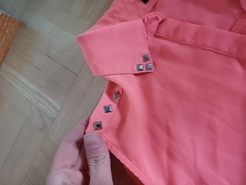 Beautiful decorative shirt. Size M. At the bottom a cord. Shirt has a faint stain.