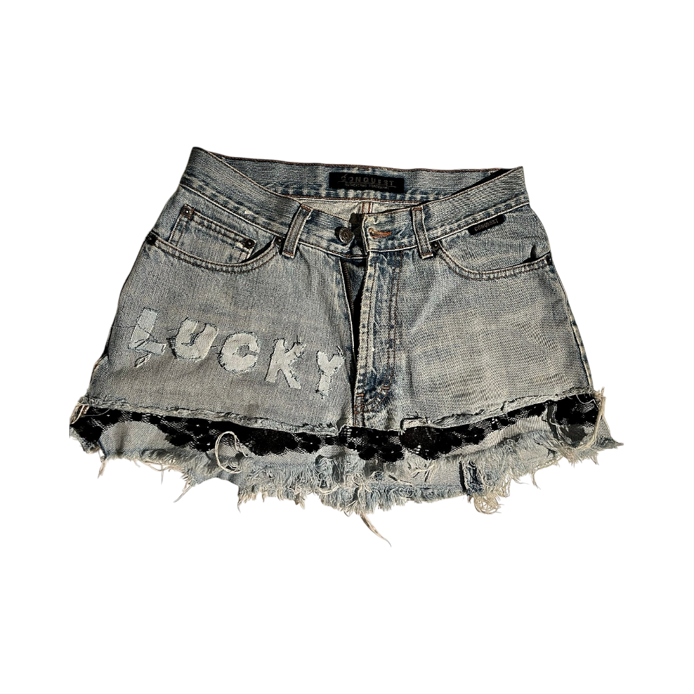Stylish and fashionable denim mini skirt.